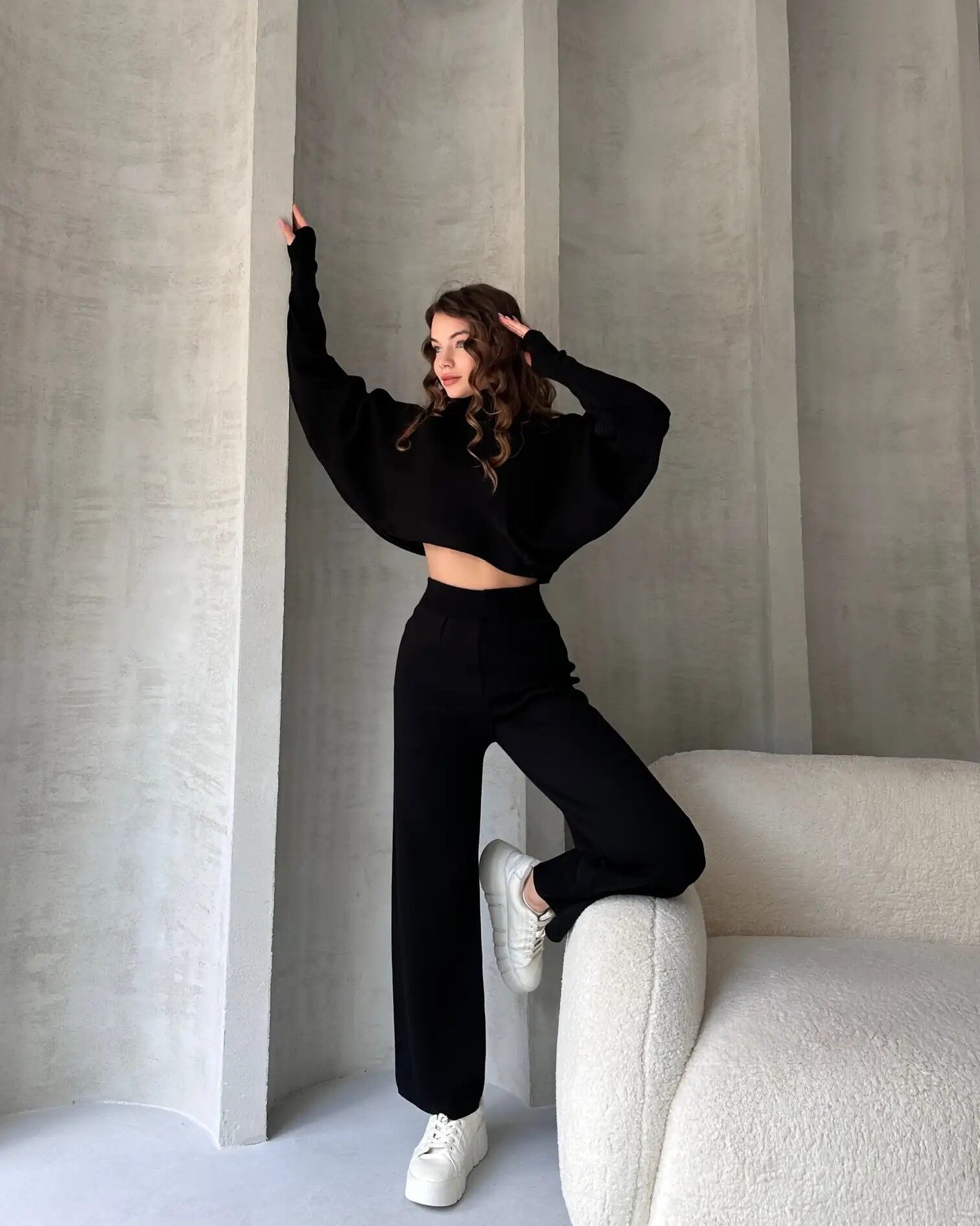 - Klasik siyah renk seçeneğiyle her ortama uyum sağlayan Balıkçı Crop Kazak ve Pantolon Triko Takım.; - Orta kalınlıkta triko kumaş, soğuk kış günlerinde sıcak tutar ve konforlu bir kullanım sunar.; - Mono kapama detayı ile kolayca giyilip çıkarılabilir ve şık bir görünüm sağlar.; - Balıkçı yaka tasarımı, boynunuzu nazikçe sararak stilinizi tamamlar.; - Beli lastikli pantolon, rahat hareket etme özgürlüğü sunarken aynı zamanda şık bir siluet oluşturur.; - Genç yaş grubuna hitap eden modern ve sokak stili tasarımıyla dikkat çeker.; - Sürdürülebilirlik detayları ile çevre dostu bir tercih yapmanızı sağlar.; - Palazzo kalıp pantolon, geniş paçalarıyla rahatlık ve şıklığı bir arada sunar.; - Uzun kollu kazak, kollarınızın tamamını örterek soğuktan korurken zarif bir görünüm kazandırır.; - 2 in 1 ürün tipi sayesinde hem kazak hem pantolon olarak ayrı ayrı veya takım halinde kullanılabilir.; - Astarsız yapısıyla hafif ve konforlu bir deneyim sunar.; - Kemersiz tasarım, modern ve minimalist bir stil vadediyor.; - Örgü dokuma tipiyle dayanıklılık ve estetik görünüm bir arada.; - Türkiye'de üretilmiş olmasıyla yerel üretimden yana tercihinizi gösterir.; - Standart bel kesimiyle farklı vücut tiplerine uyum sağlar.; - Standart kol tipi ile rahat hareket etme özgürlüğü verir.; - Düz desenli tasarım, zamansız bir şıklık sunarak gardırobunuzda uzun süre yerini korur.; - Crop boy kazak, modern ve trend bir görünüm kazandırarak genç stilinizi ön plana çıkarır.; - Kadın/Kız kullanıcılar için ideal seçim olan bu takım, her ortamda dikkat çekici bir tarz yaratmanızı sağlar.; - 30 derecede yıkama talimatına uygun şekilde bakım yapılması önerilir.; - Standart beden seçeneğiyle geniş beden yelpazesine hitap eder.