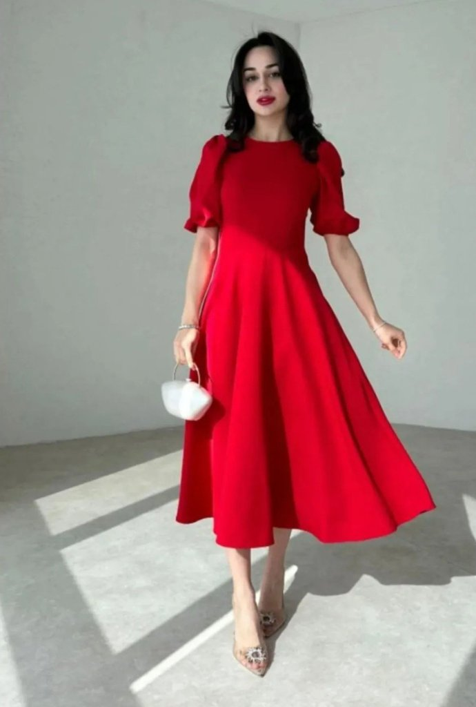 Kırmızı midi boy karpuz kollu viskon
